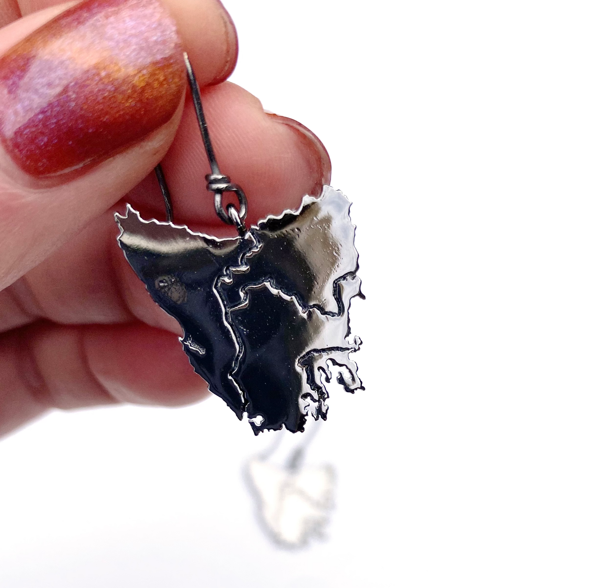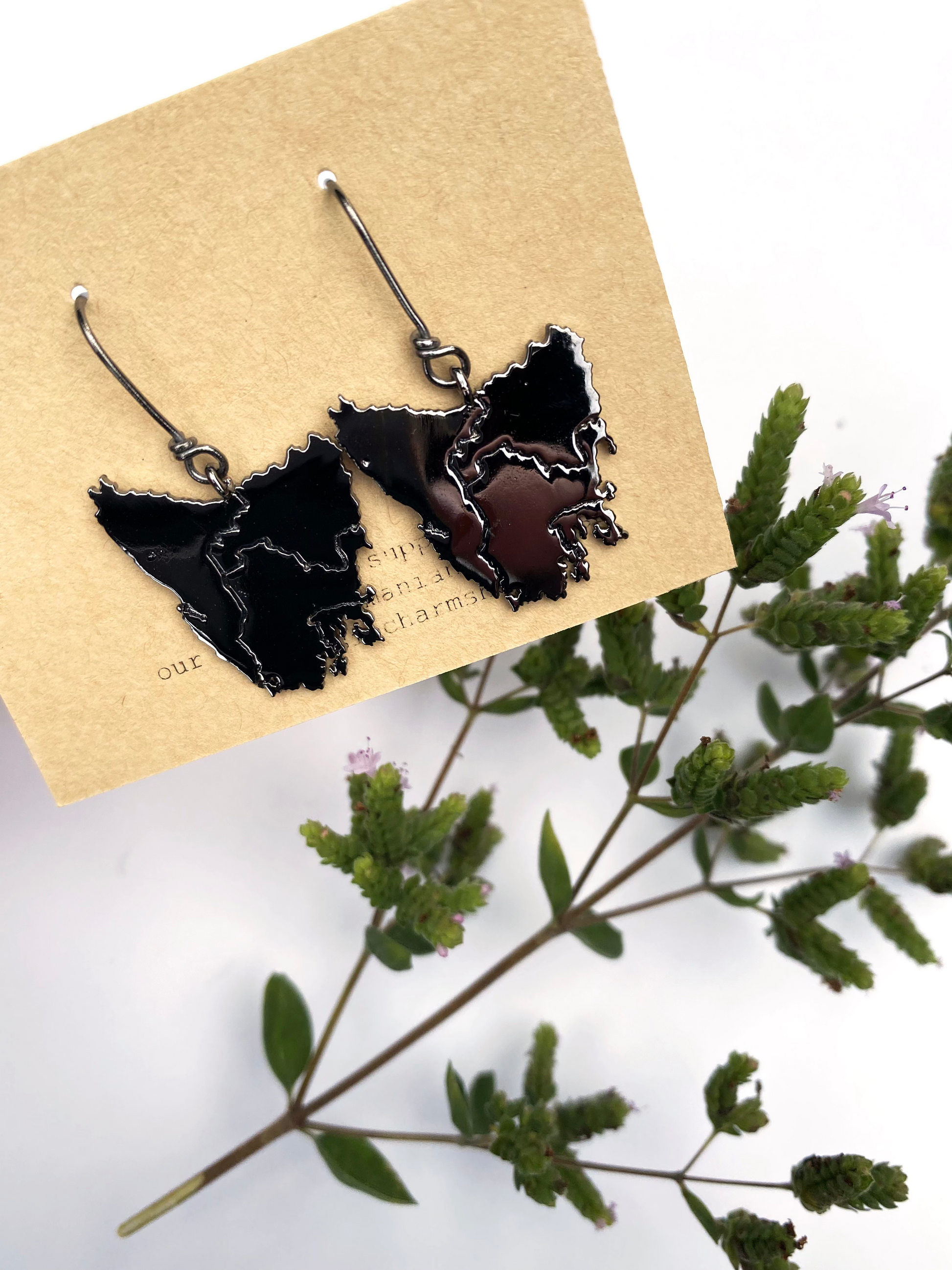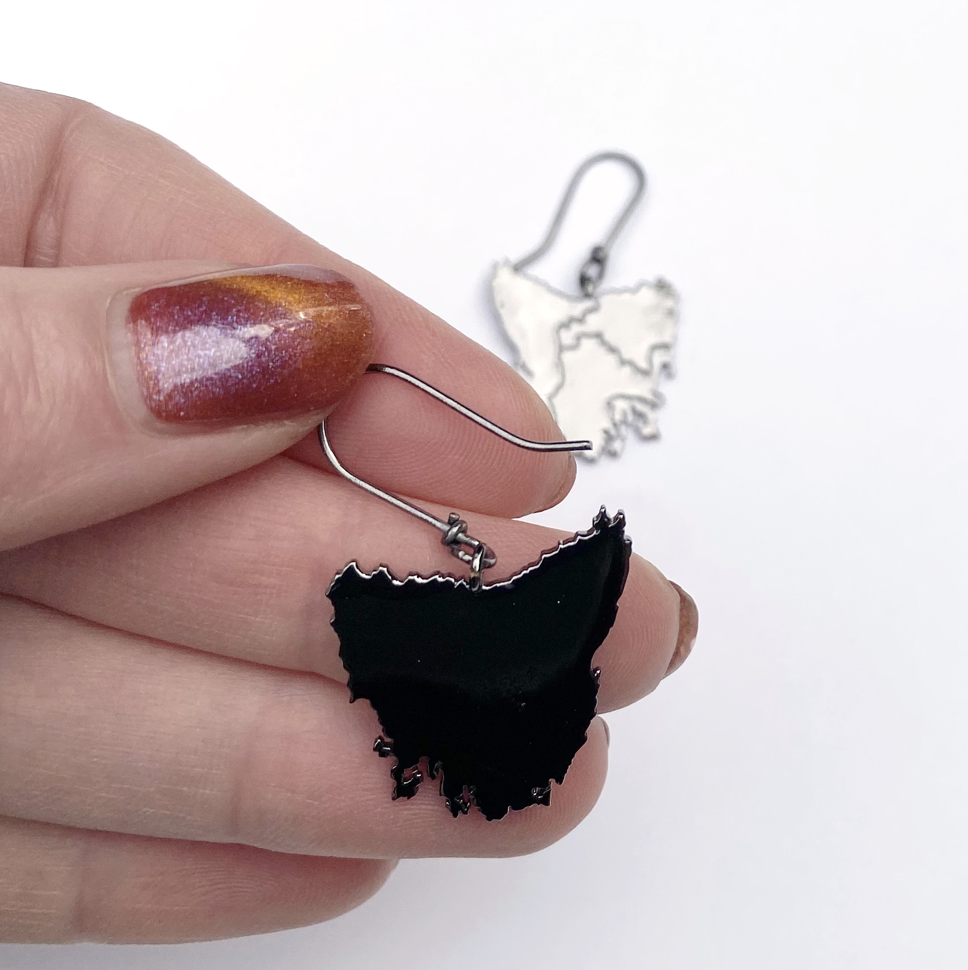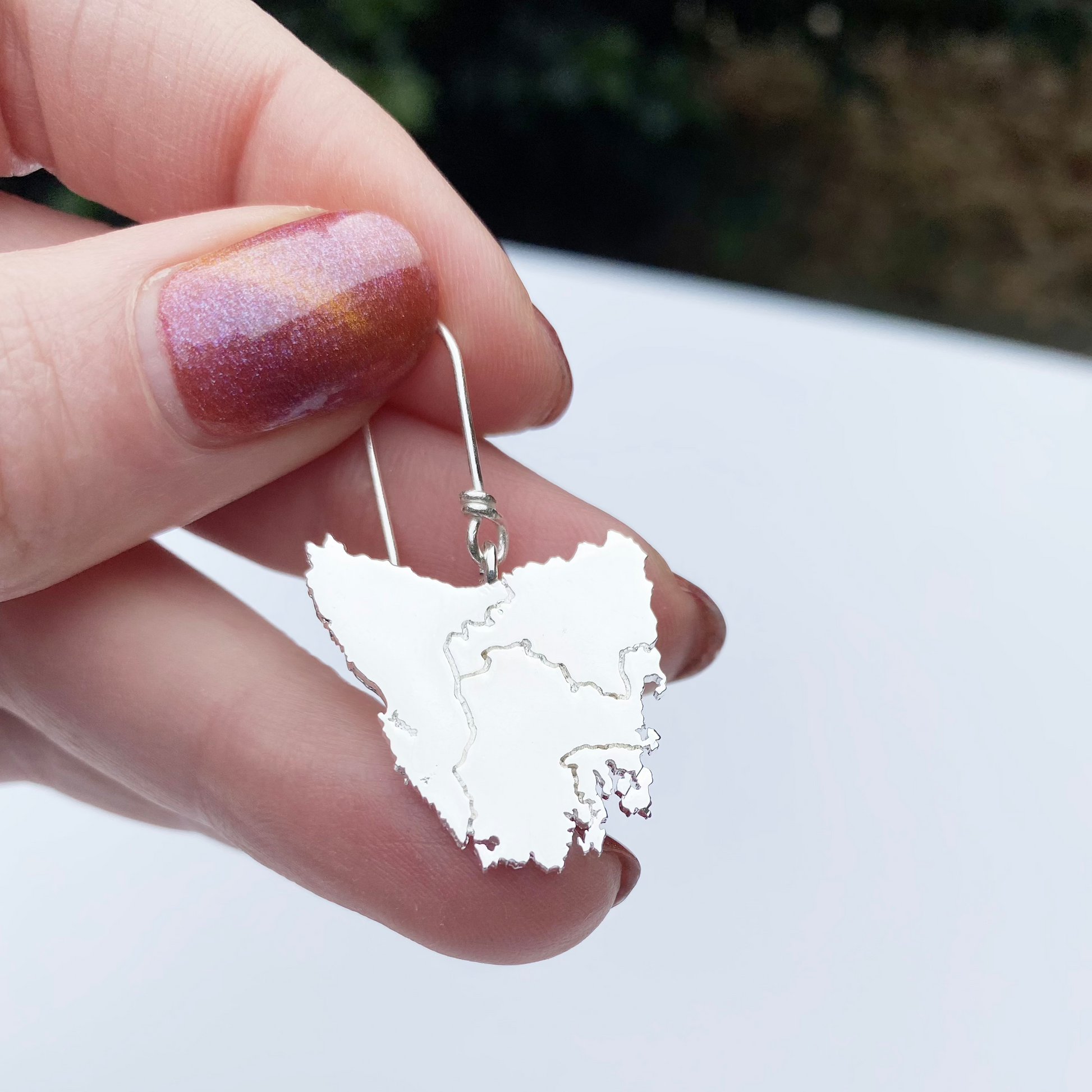 Tassie map inspired earrings in four beautiful metal plated options plus Stirling silver: