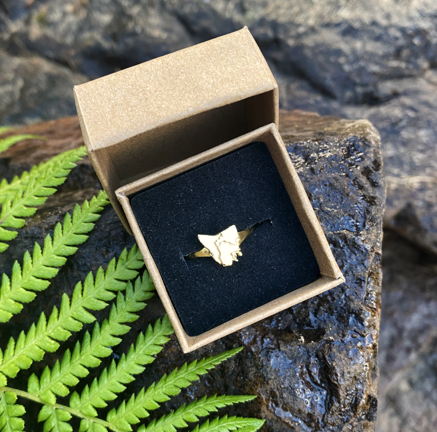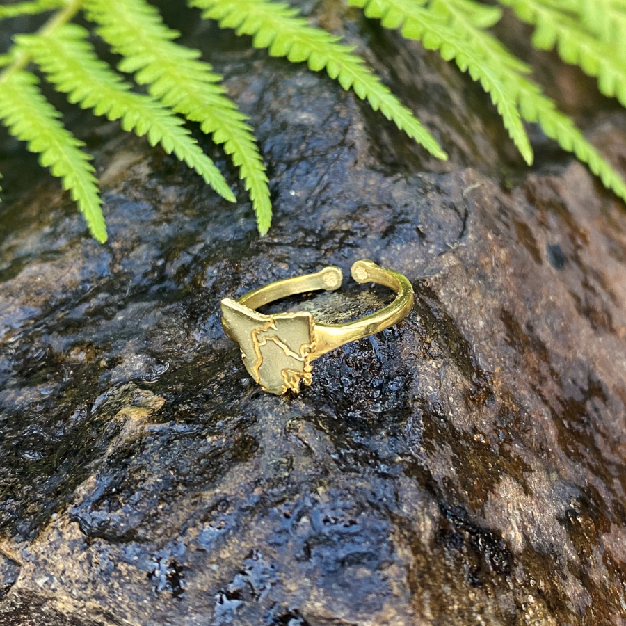 Adjustable band size ring featuring a beautifully detailed Tasmanian map.